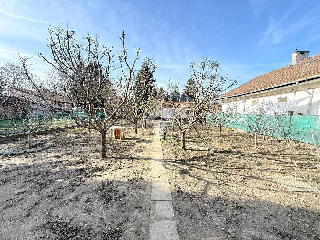 A 880 m²-es, 15 méter utcafronttal rendelkező telek igazi kertvárosi hangulatot áraszt. A kertben 25 darab termő gyümölcsfa található, amelyek nemcsak esztétikai értéket képviselnek, hanem bőséges termést is biztosítanak az új tulajdonos számára.