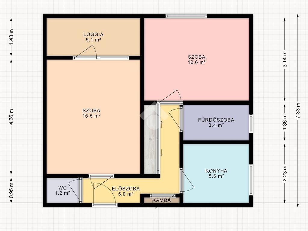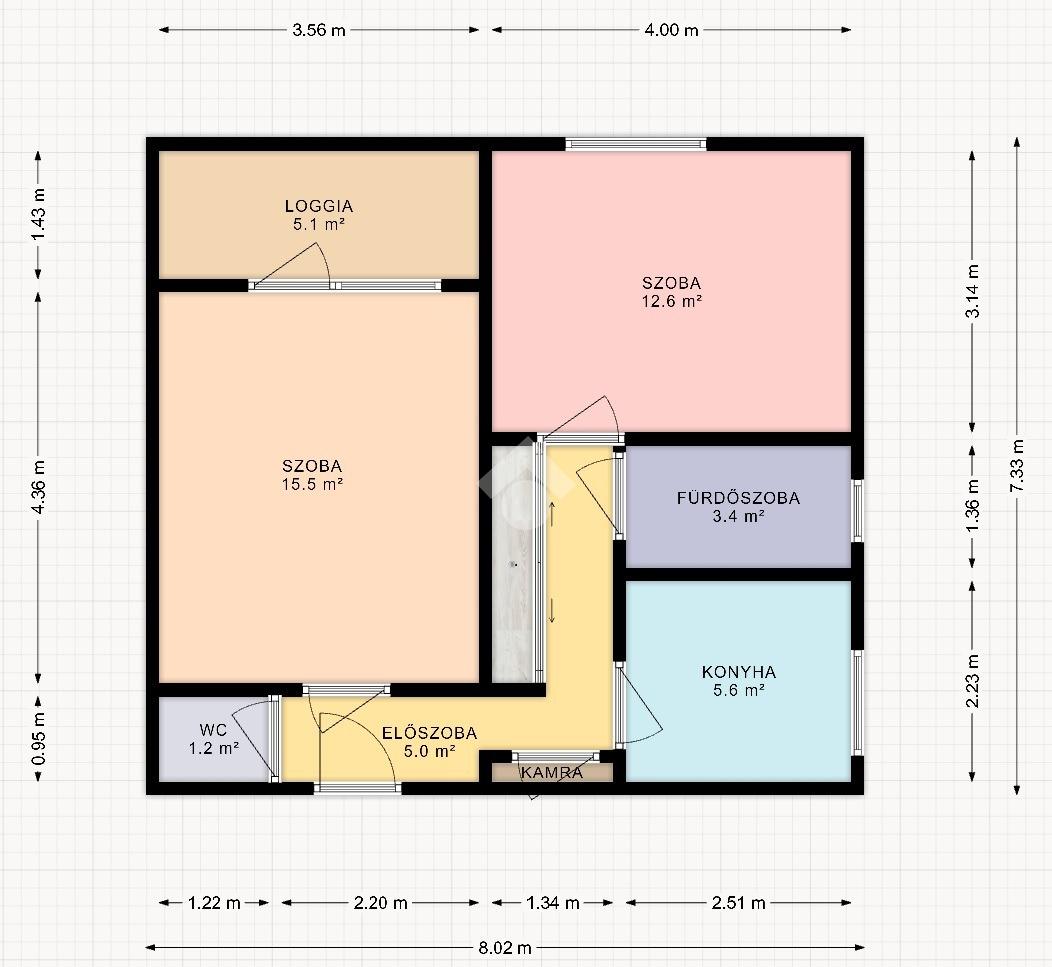 A lakás 52m2-es, tégla építésű, 4nm loggiával.